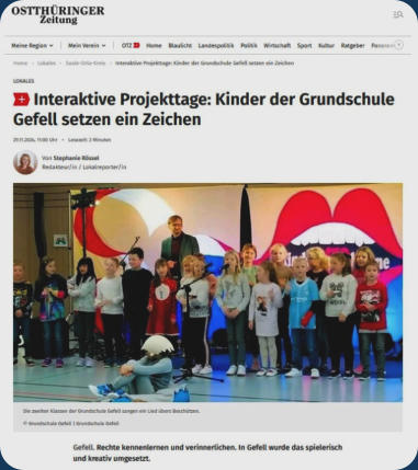 Musiktheaterprojekt für Grundschulen namens »Barfuß über Wiesen - Projekttage - KINDERRECHTE«.